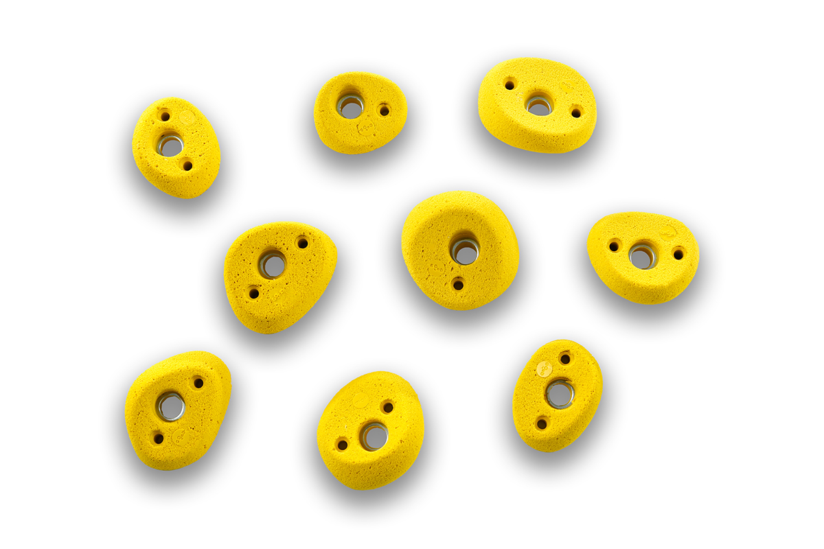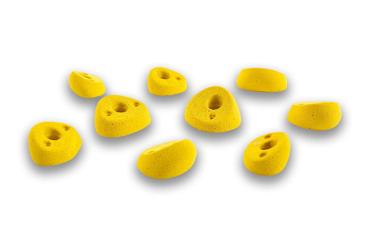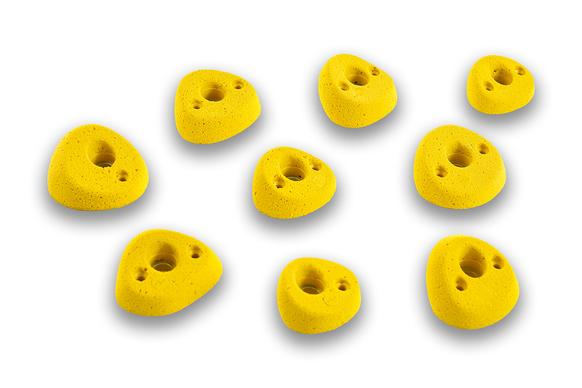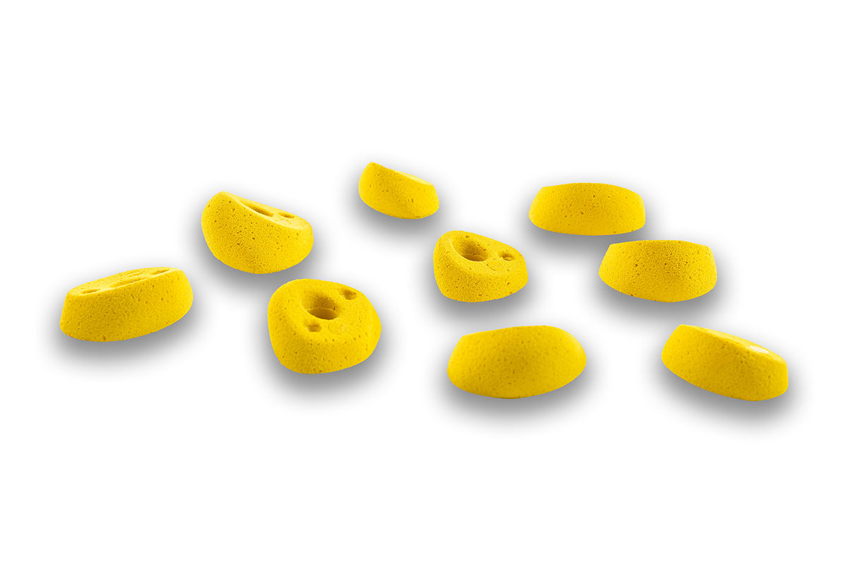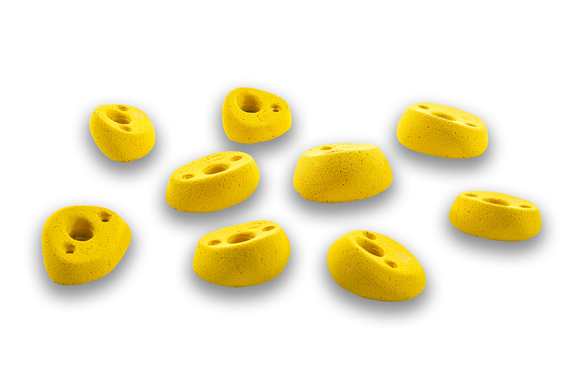 Set of 9 positive footholds, from flat to slighlty incut, perfects for flat angle walls and volumes.