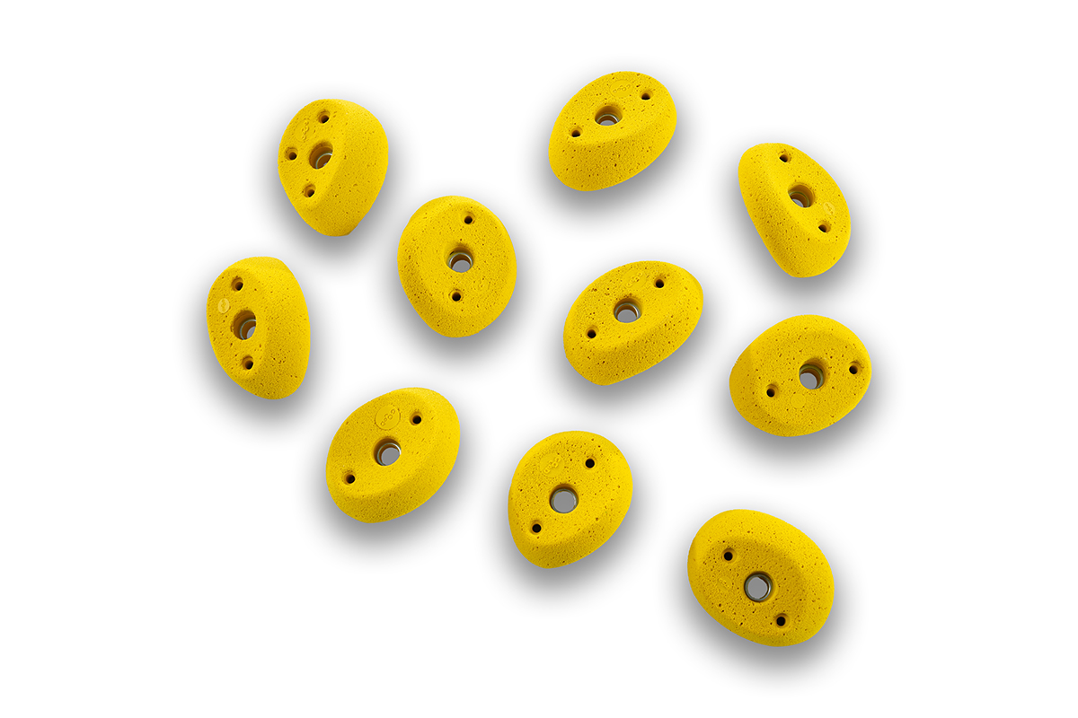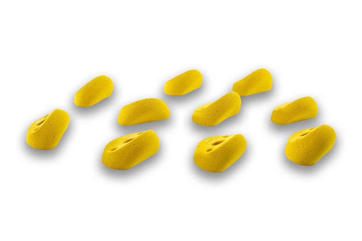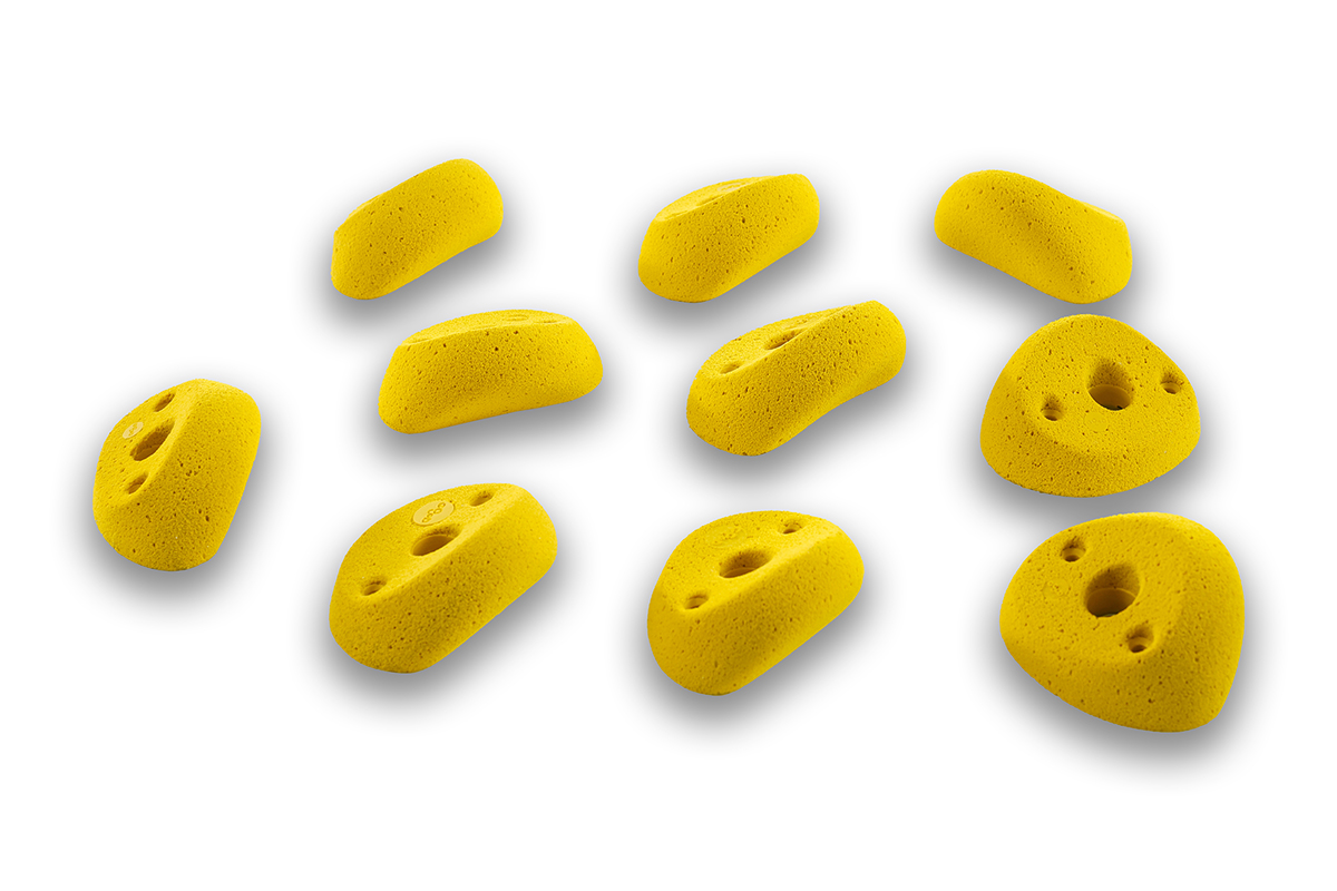 Set of 10 M sized finger jugs, very confortable on flat walls or on volumes. Very usefull as footholds on heavy overhang.